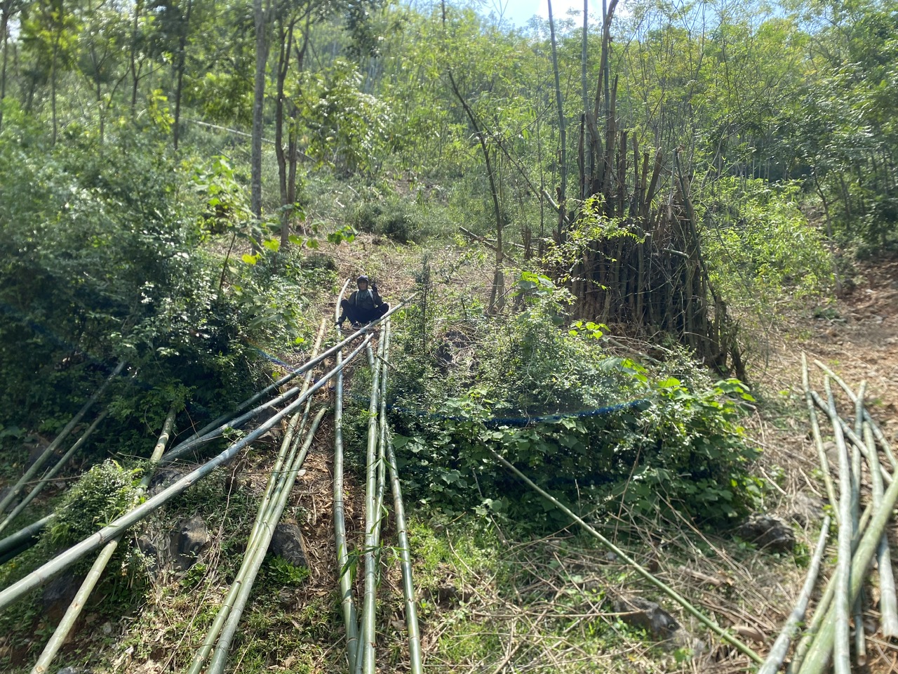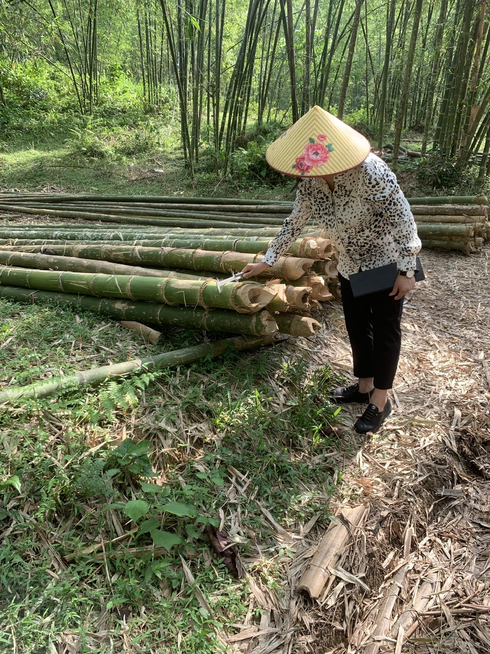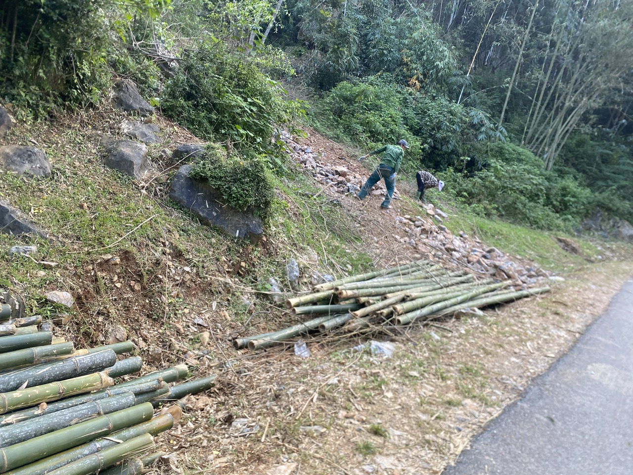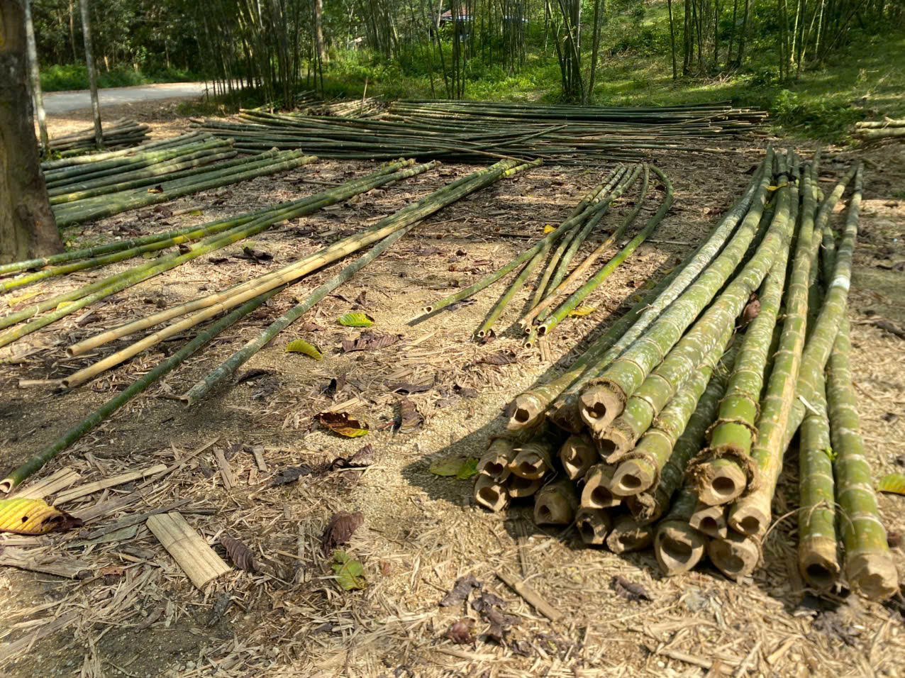 Bước 2: Tre được phân loại kích thước và phân loại thành từng đống ngay tại chân đồi